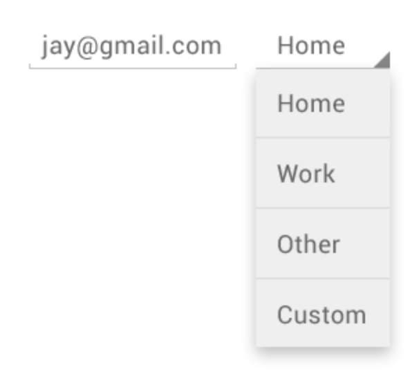 스피너는 값 집합에서 하나의 값을 선택할 수 있는 빠른 방법을 제공합니다. 기본 상태의 스피너는 현재 선택된 값을 표시합니다. 스피너를 터치하면 기타 모든 사용 가능한 값을 포함하는 드롭