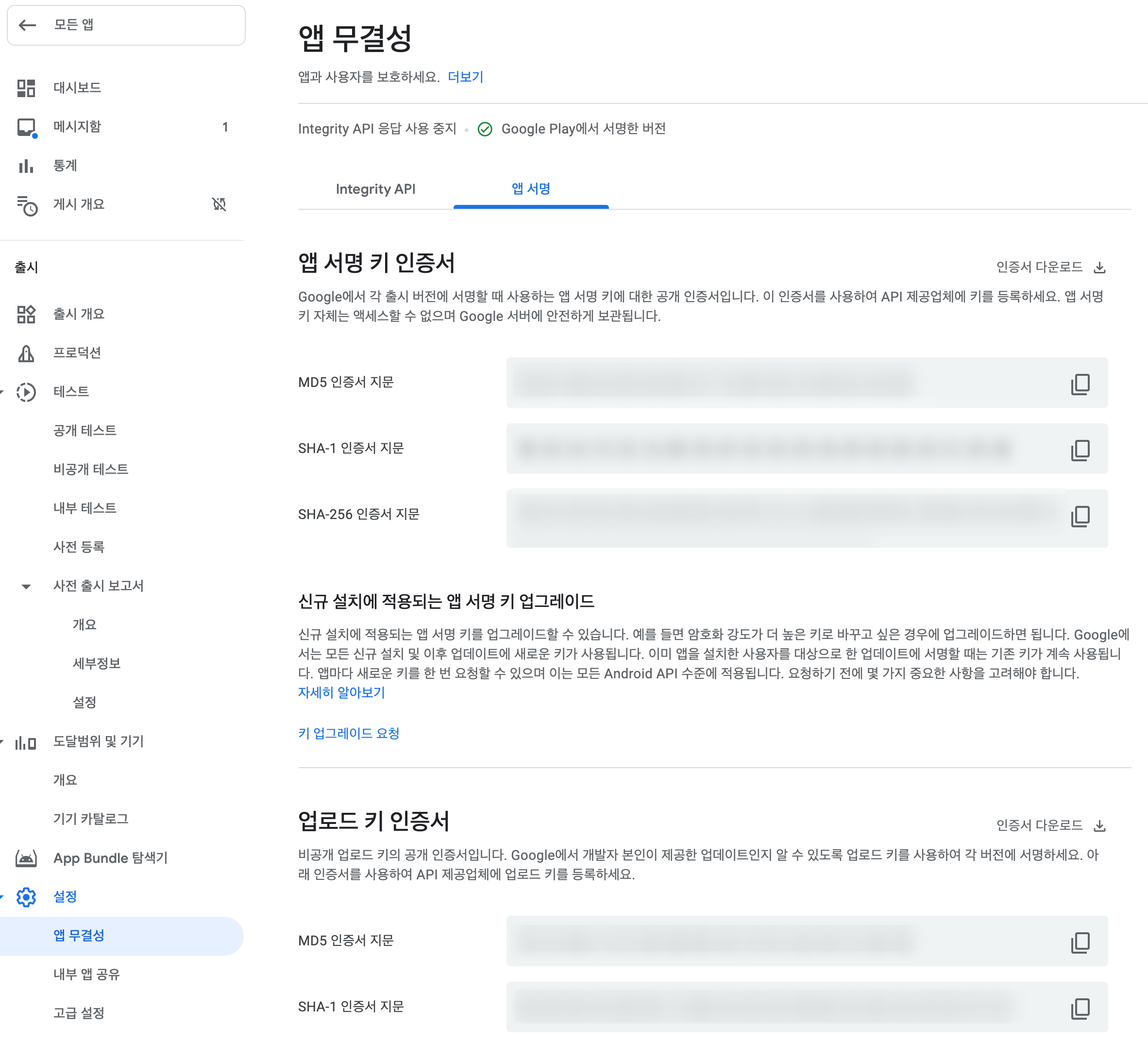플레이스토어 > 설정 > 앱 무결성에 들어간 후