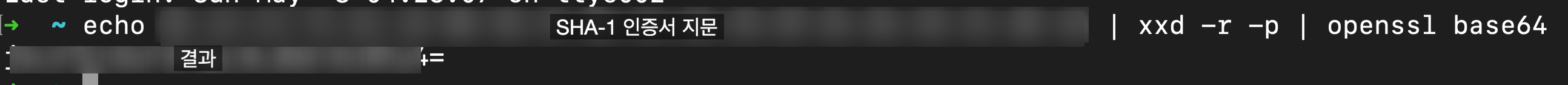 echo [인증서 지문] | xxd -r -p | openssl base64