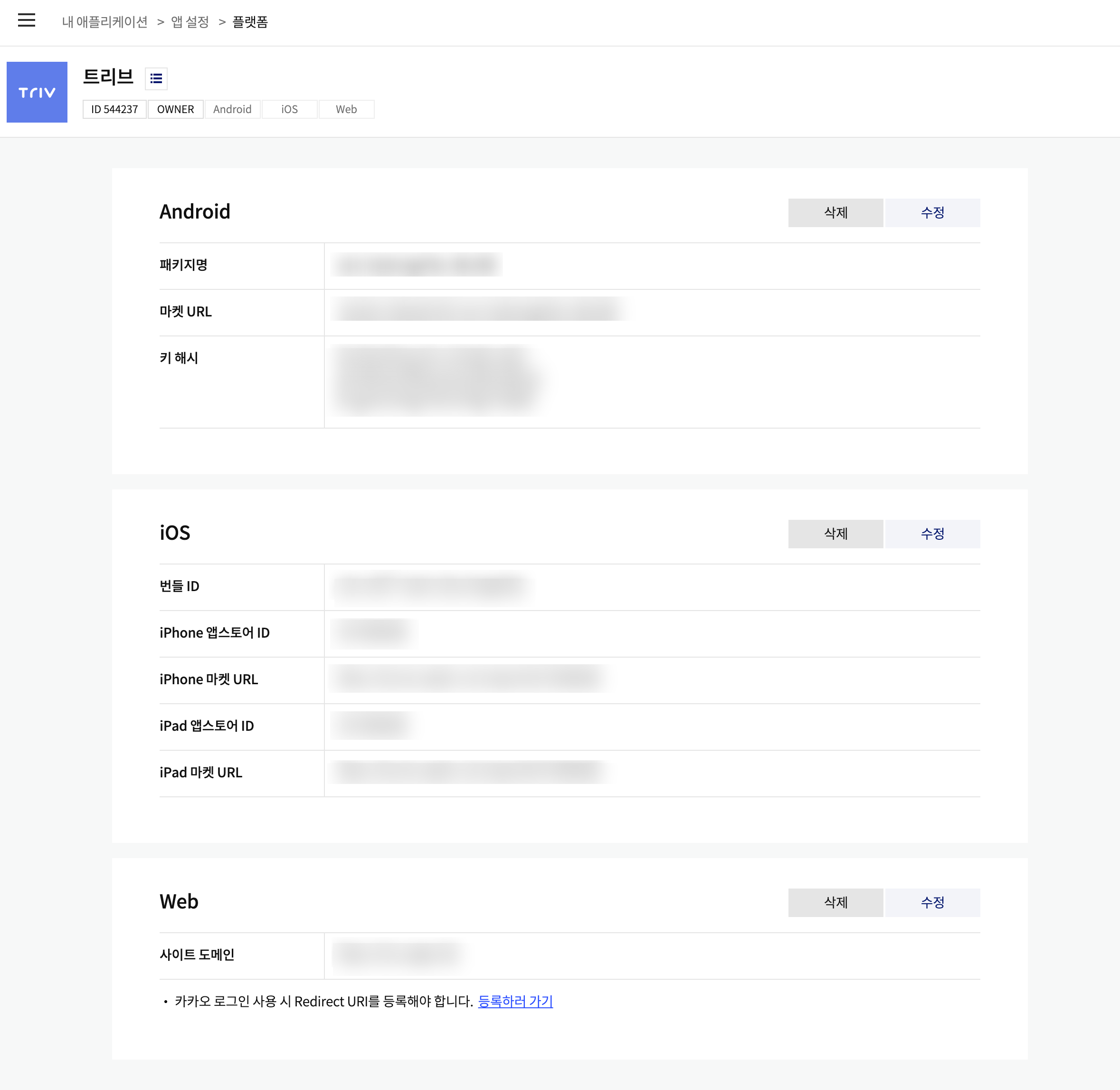 카카오 디벨로퍼스에서 플랫폼 정보에 키 해시를 교체해주면 된다.
